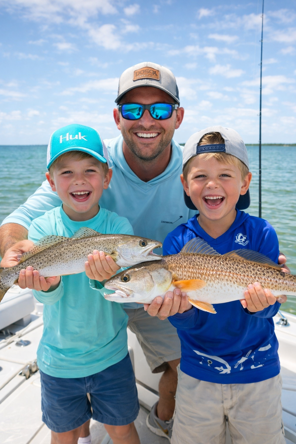 A typical kids fishing charter focuses on calm, manageable water and species that offer a good chance of action. Depending on the season, weather, tide, and launch location, your group may target fish such as redfish, speckled trout, flounder, sheepshead, or black drum.